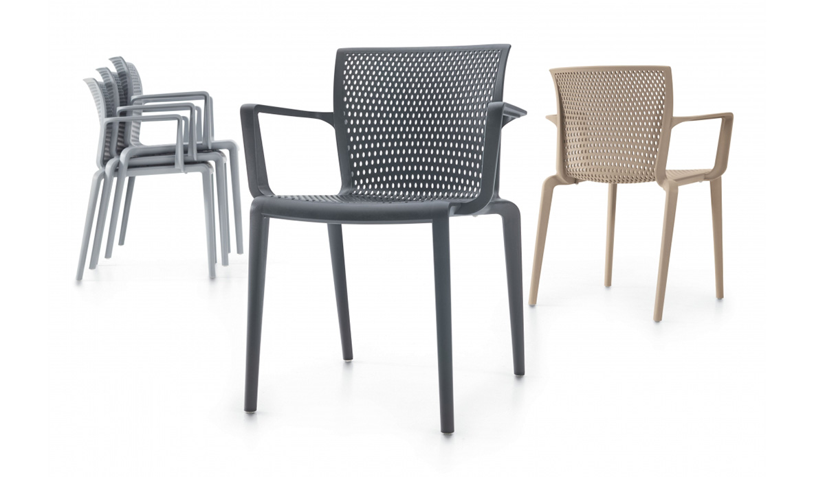 Spyker™ is a refined, high quality and lightweight stacking chair that can be used both indoors and out. Spyker armchairs don’t skimp on size and are comfortable enough for hours of people watching, or a long overdue catch up with a friend.