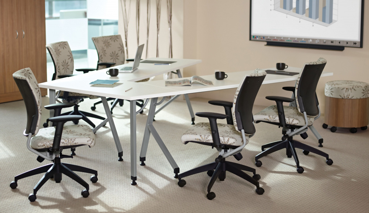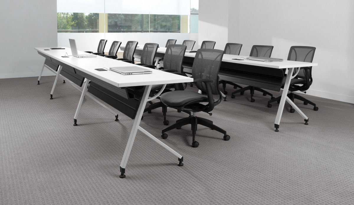 - Freestanding configurations allow worksurfaces to be easily reconfigured for changing classroom and boardroom environments.